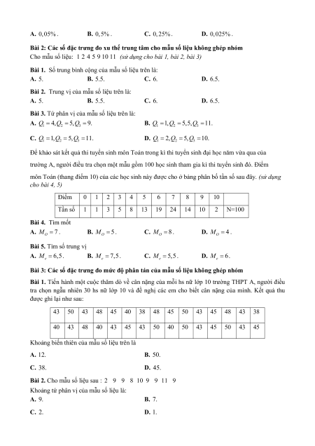 Bài 3: Các số đặc trưng đo mức độ phân tán của mẫu số liệu không ghép nhóm