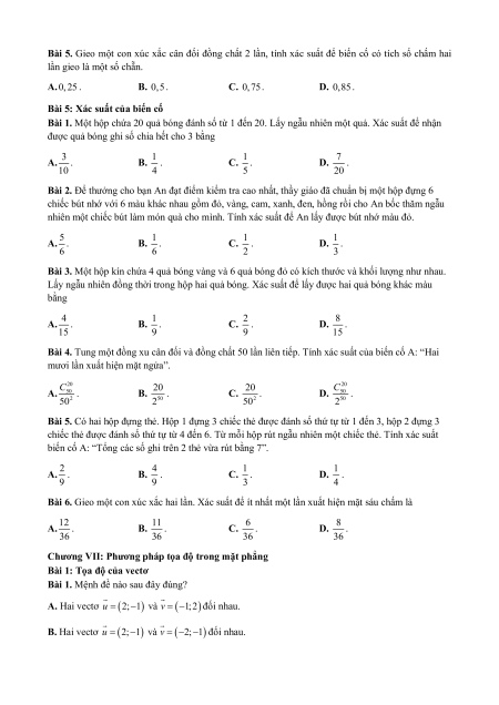 Chương VII: Phương pháp tọa độ trong mặt phẳng