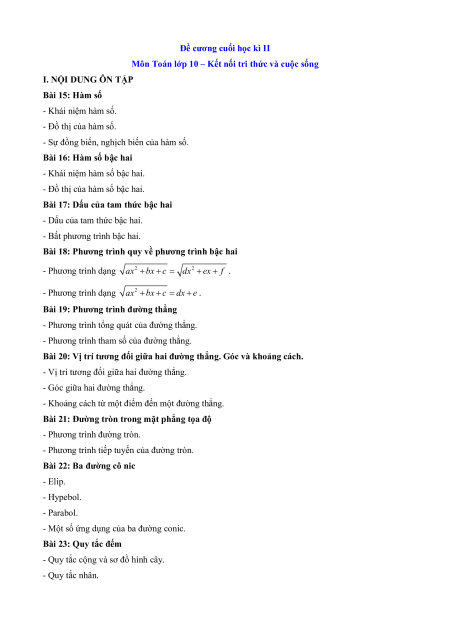 Đề cương ôn tập Cuối kì 2 Toán 10 Kết nối tri thức