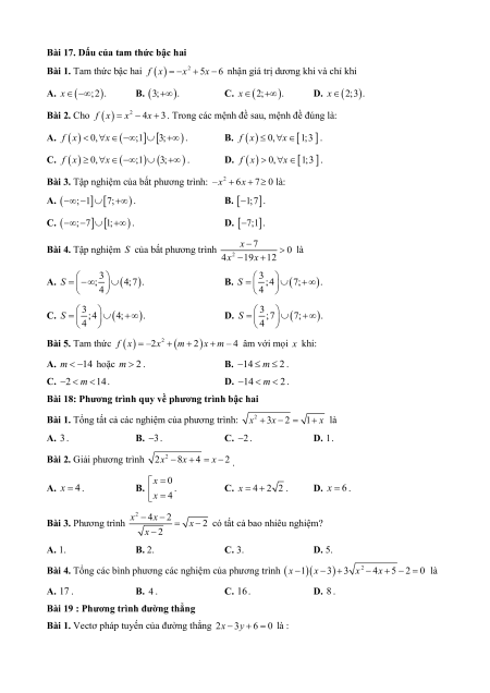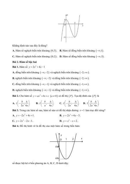 C. Hàm số nghịch biến trên khoảng 0;2 . D. Hàm số đồng biến trên khoảng ; 3 . Bài 2. Hàm số bậc hai Bài 1. Hàm số 2