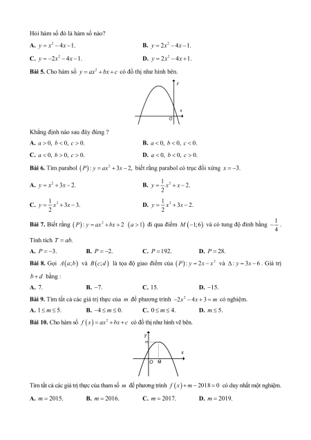 Bài 3. Trong các hàm số sau, hàm số nào có đồ thị nhận đường x 1 làm trục đối xứng? A. 2 y 2