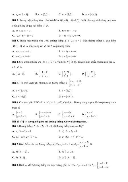 Bài 20: Vị trí tương đối giữa hai đường thẳng. Góc và khoảng cách.