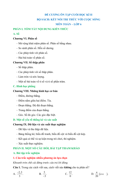 Đề cương ôn tập Cuối kì 2 Toán 6 Kết nối tri thức Cấu trúc mới