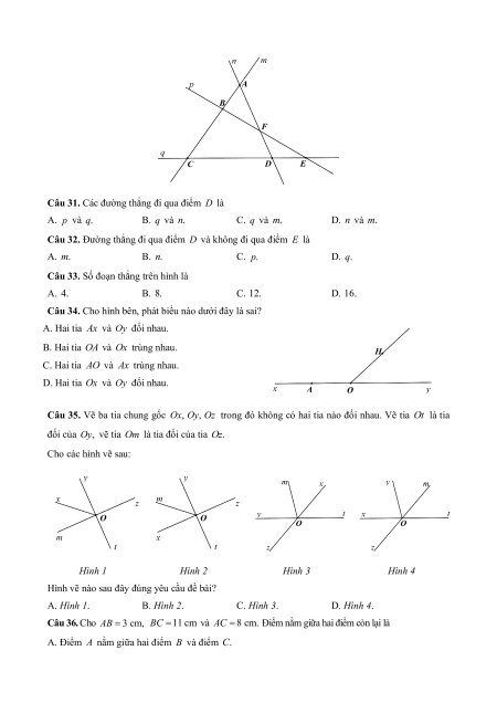 – Điểm nằm giữa hai điểm. Tia.