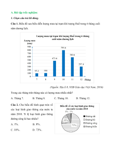 Câu 1. Biểu đồ sau biểu diễn lượng mưa tại trạm khí tượng Huế trong 6 tháng cuối năm dương lịch.