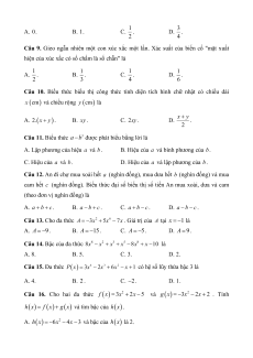 Câu 9. Gieo ngẫu nhiên một con xúc xắc một lần. Xác suất của biến cố "mặt xuất