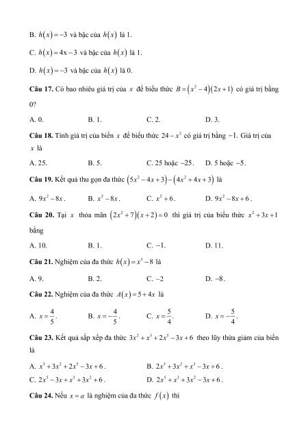 2. Đa thức một biến, nghiệm của đa thức một biến.
