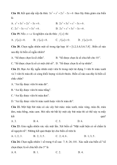 Câu 20. Chọn ngẫu nhiên một số trong tập hợp M 1;2;3;4;5;6;7; 8 . Biến cố nào