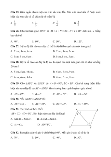 Câu 23. Gieo ngẫu nhiên xúc xắc một lần. Xét biến cố “Mặt xuất hiện có số chấm là