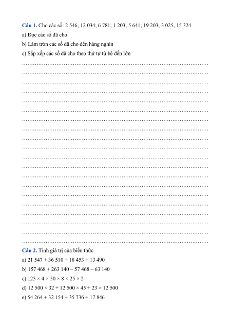 Dạng 1. Ôn tập về số tự nhiên và các phép tính với số tự nhiên
