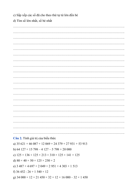Dạng 1. Ôn tập về số tự nhiên và các phép tính với số tự nhiên
