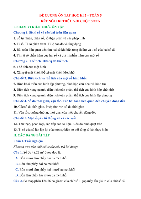 ĐỀ CƯƠNG ÔN TẬP HỌC KÌ 2 – TOÁN 5