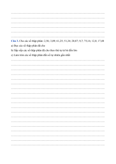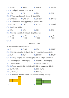 Câu 7. Số thập phân 25,46 viết dưới dạng hỗn số là: A. 406 25 B. 46 25 C. 54 2 D. 46 5 100 100 100 100 Câu 8. 0,57 m3 = … dm3
