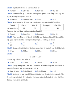 Câu 22. Trên bản đồ tỉ lệ 1 : 100 000, khoảng cách giữa A và B bằng 2 cm. Vậy trên