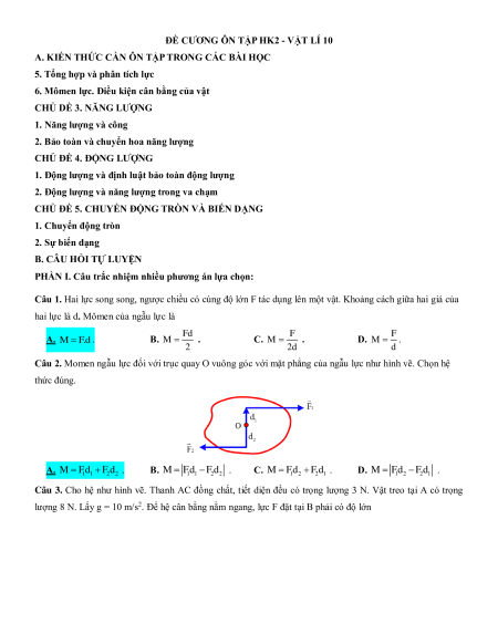 ĐỀ CƯƠNG ÔN TẬP HK2 - VẬT LÍ 10