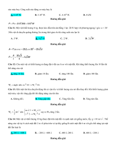 của máy bay. Công suất của động cơ máy bay là A. 5.108 W. B. 5.106 W. C. 4.108 W. D. 8 kW. Hướng dẫn giải 6 8 P Fv 21 . 0 2 . 50 51 . 0 W
