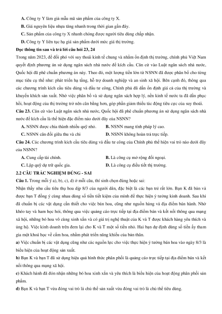 Đọc thông tin sau và trả lời câu hỏi 20, 21, 22