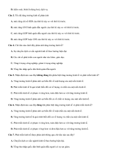 Câu 5. Nhận định nào sau đây không đúng khi phân biệt tăng trưởng kinh tế và phát triển kinh tế?