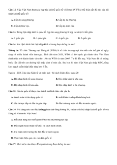 Câu 13. Trong hội nhập kinh tế quốc tế, hợp tác song phương là hợp tác được kí kết giữa A. 2 quốc gia. B. 3 quốc gia. C. 4 quốc gia. D. 5 quốc gia.