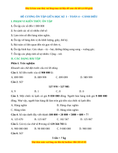 ĐỀ CƯƠNG ÔN TẬP GIỮA HỌC KÌ I – TOÁN 4 – CÁNH DIỀU