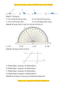 Câu 16. Trong các góc dưới đây, góc nào là góc nhọn?