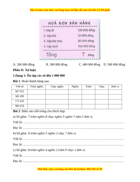 Câu 25. Mẹ mua cho Hà mua một số đồ dùng với giá tiền như hoá đơn bên. Vậy tổng số
