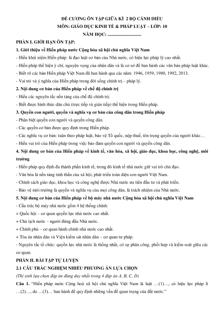Đề cương ôn tập giữa học kì 2 Kinh tế pháp luật 10 Cánh diều