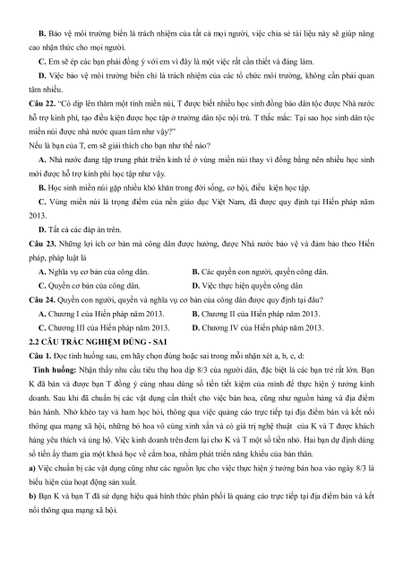 Câu 21: H và nhóm bạn của mình rất quan tâm đến việc tuyên truyền về bảo vệ môi trường biển. Sau một