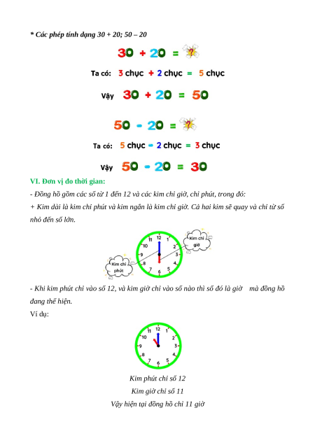 - Đồng hồ gồm các số từ 1 đến 12 và các kim chỉ giờ, chỉ phút, trong đó: