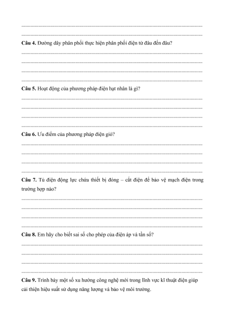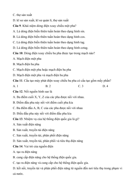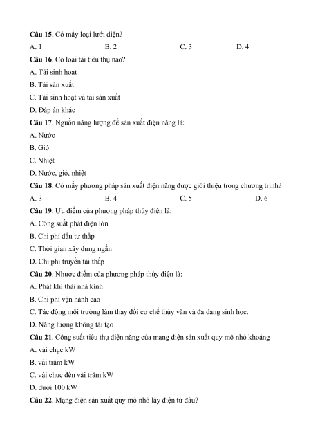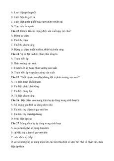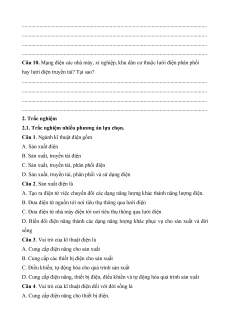 Câu 1. Ngành kĩ thuật điện gồm A. Sản xuất điện