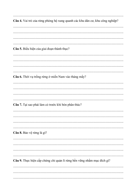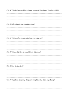 + Ý nghĩa, nhiệm vụ, thực trạng của việc bảo vệ và khai thác rừng II. Câu hỏi ôn tập 1. Tự luận.