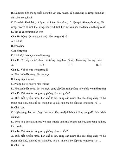 Câu 8. Thiệt hại do cháy rừng gây ra là A. Giảm diện tích rừng