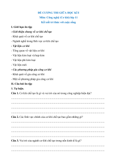 Đề cương ôn tập Giữa kì 1 Công nghệ cơ khí 11 Kết nối tri thức (có đáp án)