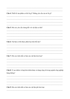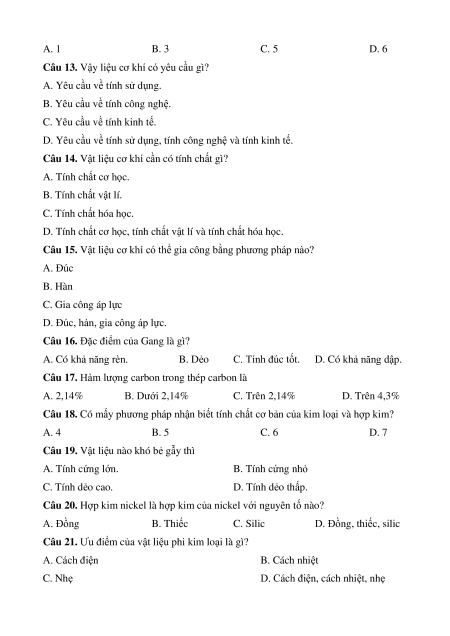 Câu 12. Vật liệu cơ khí cần đảm bảo mấy yêu cầu chung?