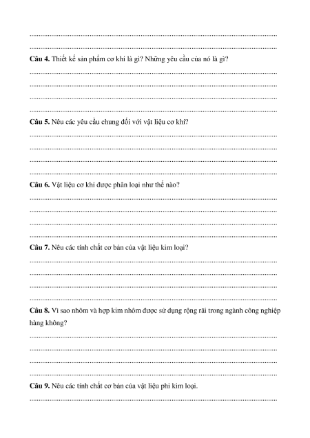 Câu 5. Nêu các yêu cầu chung đối với vật liệu cơ khí?