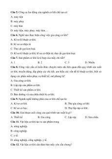 Câu 9. Ngành nghề không phải của cơ khí chế tạo là: A. Kĩ sư cơ khí. B. Thợ gia công cơ khí. C. Kĩ sư cơ học. D. Thợ lắp ráp cơ khí.