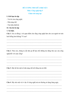Đề cương ôn tập Giữa kì 1 Công nghệ lớp 5 Chân trời sáng tạo