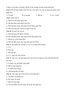 Câu 11. Sản phẩm nào sau đây có vai trò cải thiện môi trường? A. Ti vi B. Máy cấy C. Máy hút bụi