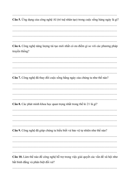 Câu 7. Công nghệ đã thay đổi cuộc sống hằng ngày của chúng ta như thế nào?