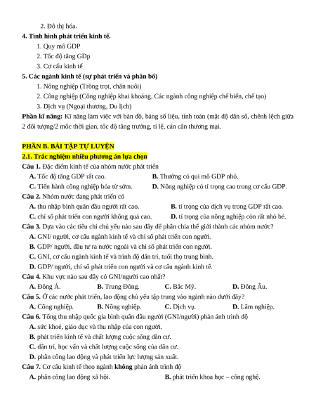 Câu 1. Đặc điểm kinh tế của nhóm nước phát triển