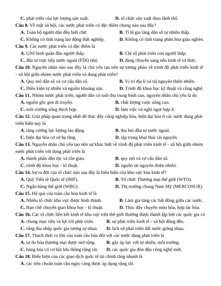 Câu 10. Nguyên nhân nào sau đây là chủ yếu tạo nên sự tương phản về trình độ phát triển kinh tế