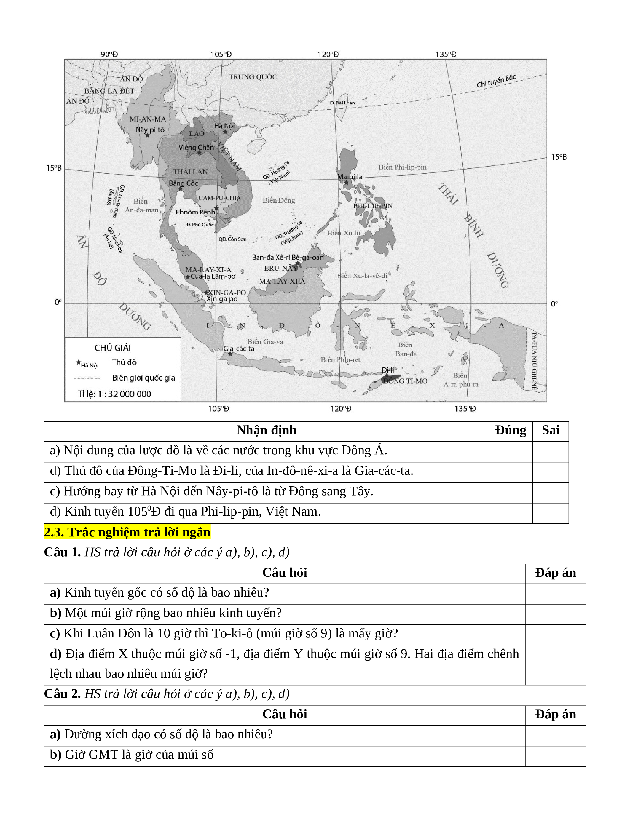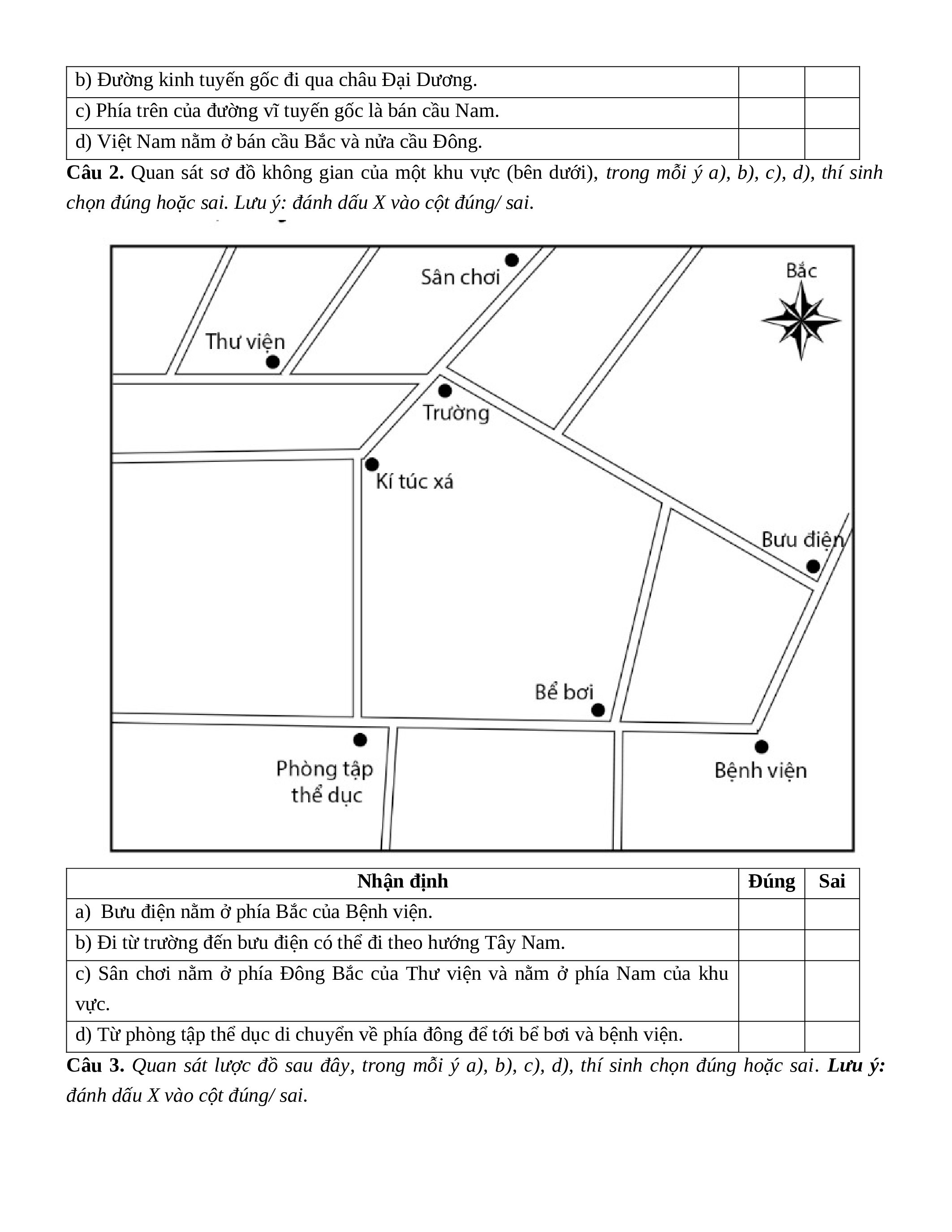 Câu 1. Quan sát lược đồ dưới đây, trong mỗi ý a), b), c), d), thí sinh chọn đúng hoặc sai. Lưu ý: