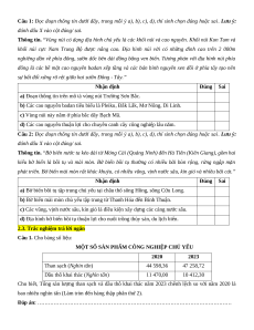Câu 3. Cho bảng số liệu: