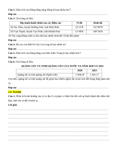 Câu 1. Cho bảng số liệu: