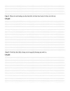 Câu 1: Phân tích ảnh hưởng của vị trí địa lí và phạm vi lãnh thổ đối với sự hình thành đặc điểm khí