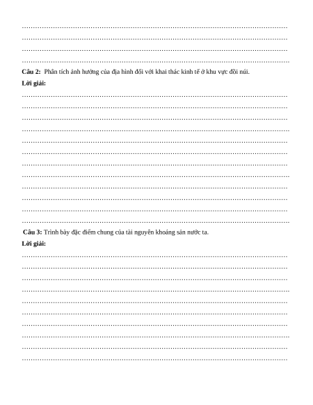 - Vị trí địa lí và phạm vi lãnh thổ Việt Nam - Địa hình Việt Nam - Khoáng sản Việt Nam