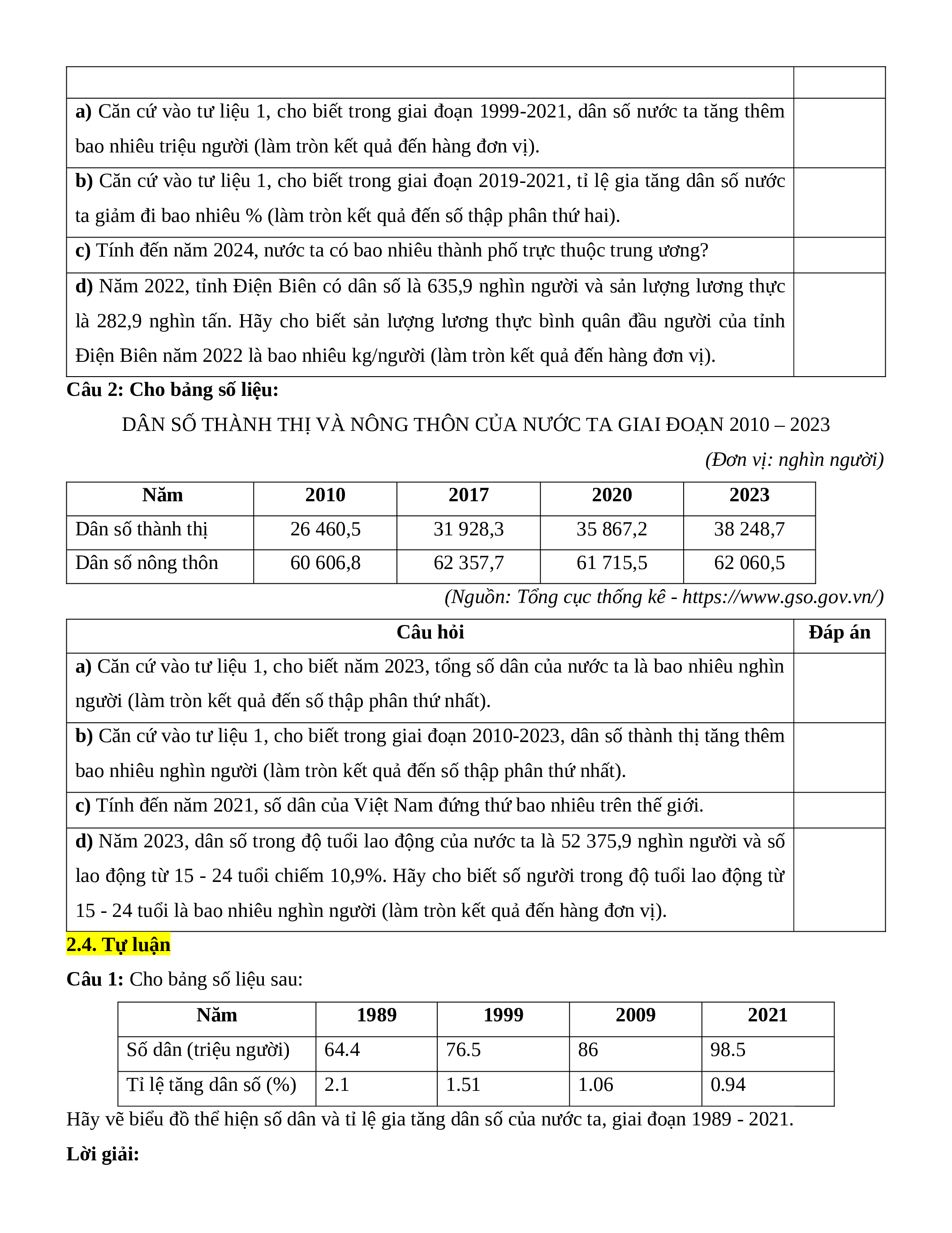- Địa lí dân cư Việt Nam: + Dân tộc và dân số
