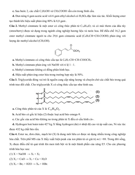Câu 11. Khi phân tích thành phần ester X (mạch hở) thu được phần trăm khối lượng các nguyên tố