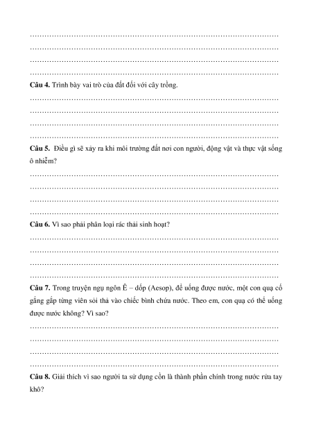 Câu 5. Điều gì sẽ xảy ra khi môi trường đất nơi con người, động vật và thực vật sống ô nhiễm?