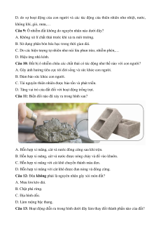 Câu 1: Để sản xuất điện, người ta không dùng nguồn năng lượng nào dưới đây? A. Than đá. B. Dầu mỏ. C. Than củi. D. Khí tự nhiên.